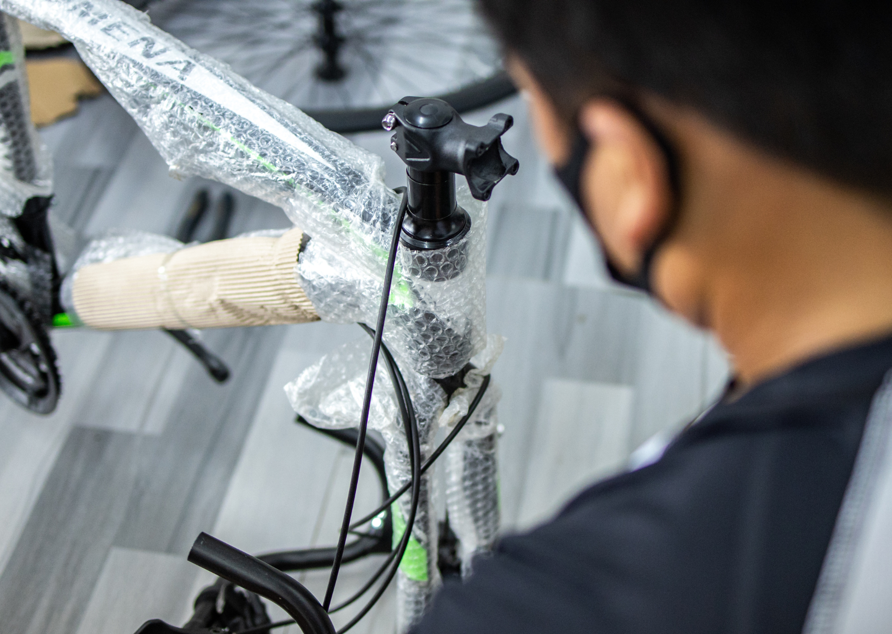Wheels - remove both wheels and replace the axles in the frame so you don’t forget them. Protect the exposed wheel hubs.